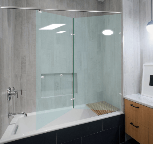 Fabricación  e instalación de CANCELES PARA BAÑO canceles de baño plegadizos GLASS SYSTEMS, con dos puertas de cristal templado que se pliegan para una completa apertura de espacio. Son la solución ideal para regaderas con poco espacio entre muros. Cuenta con un riel, bisagras y herrajes de la más alta calidad que en su conjunto, crean una apariencia elegante y esbelta que lo hace único en su tipo. Ancho máximo 2.00 mts., acabados Natural, Natural brillante y blanco